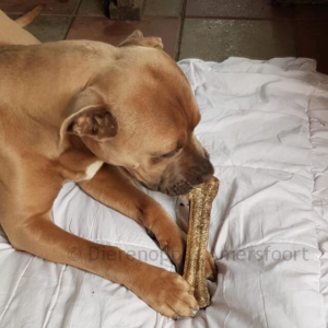 Super kluif. Uiteraard geurt het naar zalm. Voor onze Bullmastiff was het een snack. Helaas (voor mij) met 10 min opgepeuzeld. Nu is hij verder aan het knagen op de Yakstaven