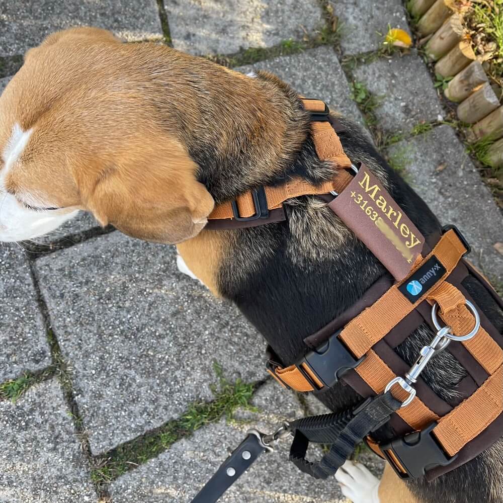 Els: “Wie zegt dat je online geen persoonlijke service kunt krijgen?! Het was even passen en meten en uitproberen, maar met de zeer actieve hulp van Lisanne heeft mijn hondje nu het perfecte AnnyX Safety tuigje. Hij oogt heel stoer in zijn camouflage kleuren ik weet dat hij veilig is. Prima!“