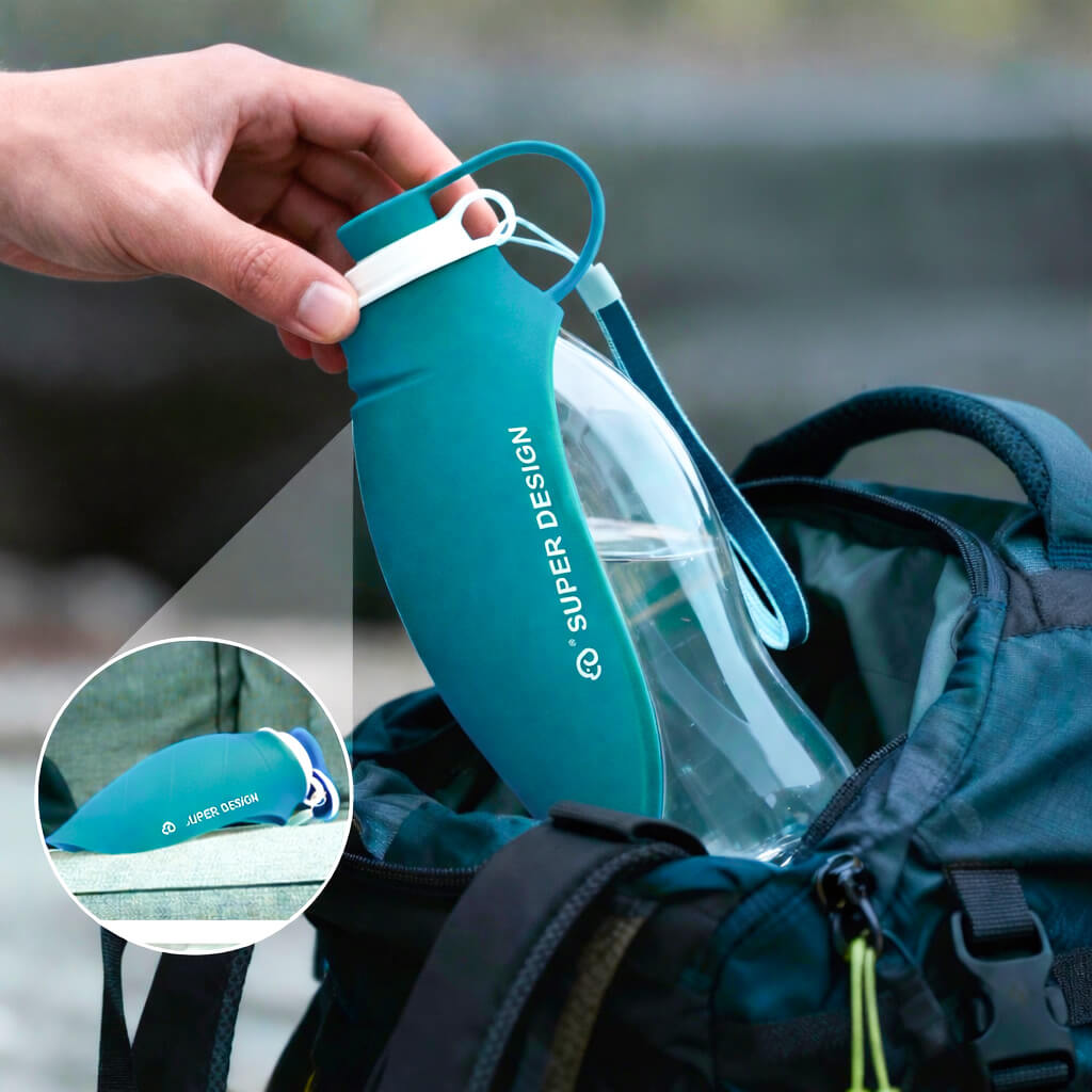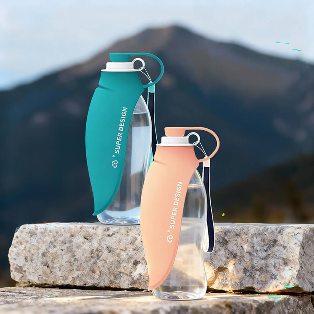 Het is een drinkflés en waterbakje in één doordat je het blad kunt gebruiken als waterbak. Heel handig als je onderweg bent en niet veel mee wil nemen. Je kunt je hond gemakkelijk uit het bakje laten drinken als je hier water in hebt gegoten. Is de hond klaar met drinken, dan giet je het water terug de fles in.