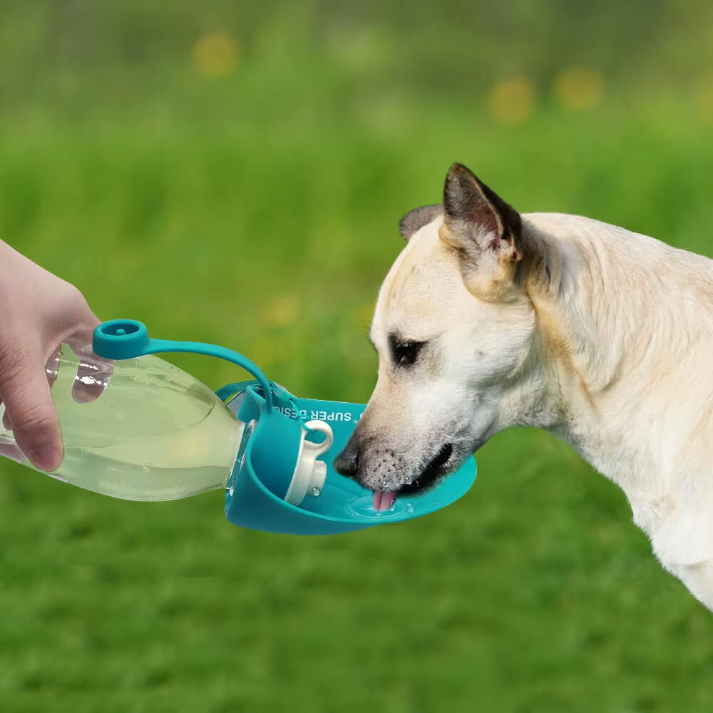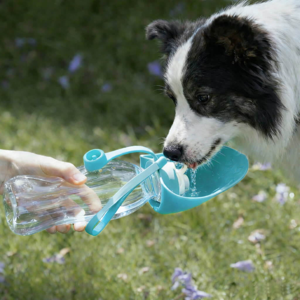 Het is een erg handige fles die je kunt gebruiken onderweg, in de auto of tijdens het wandelen. Met een hand handvat kan je ‘m makkelijk meenemen onderweg. Je hebt geen losse drinkbak nodig, want door het blad aan de zijkant om te vouwen heb je een waterbak waar de hond uit kan drinken!
