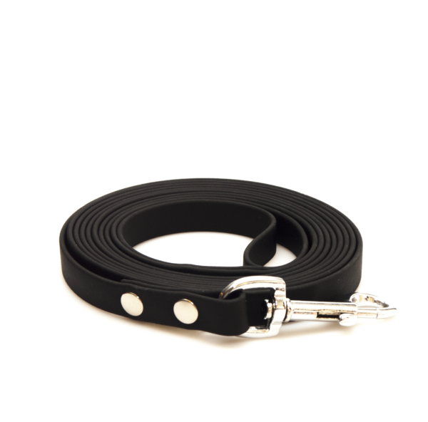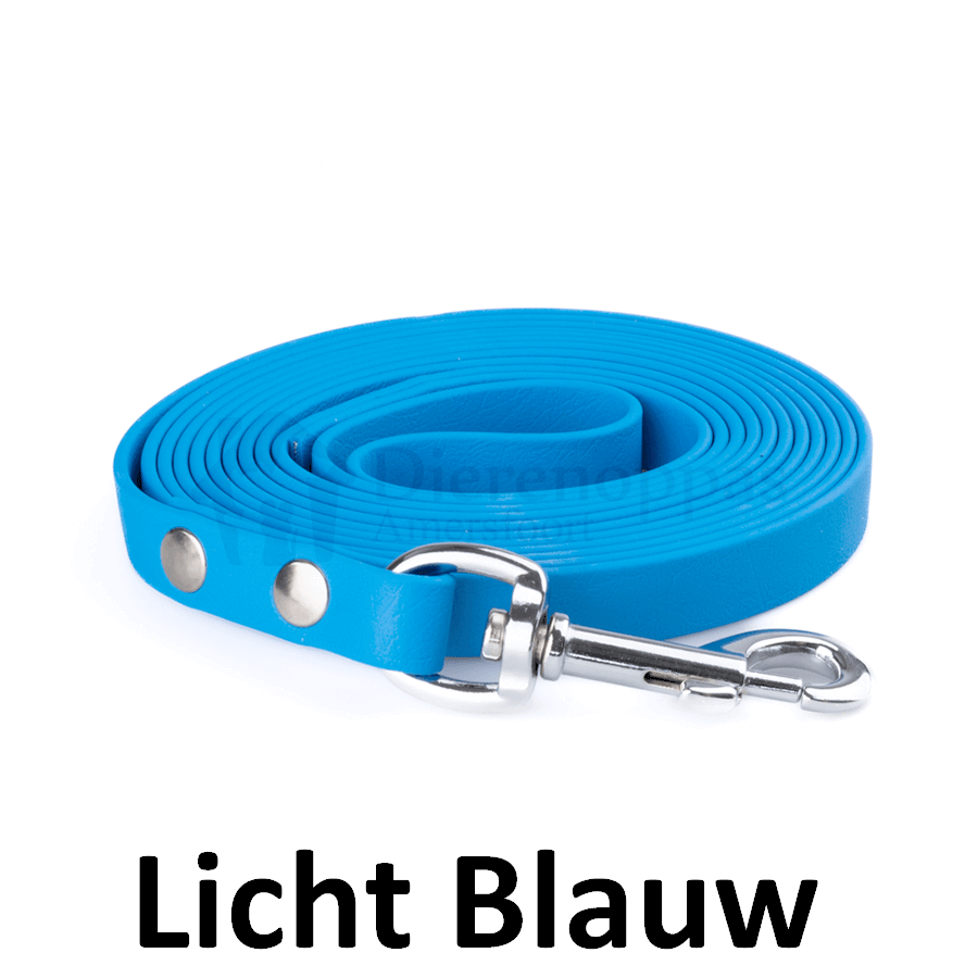 Biothane blijft mooi en droogt niet uit, verder kan dit materiaal nooit zelf kapot gaan of scheuren. Het is soepel, stevig en zacht in de hand. Ook bij zeer lage temperaturen blijft het materiaal soepel. Onze lange riemen worden in 5 en 10 meter gemaakt. Een normale lange lijn is prettiger dan een rollijn of flexlijn/flexriem.