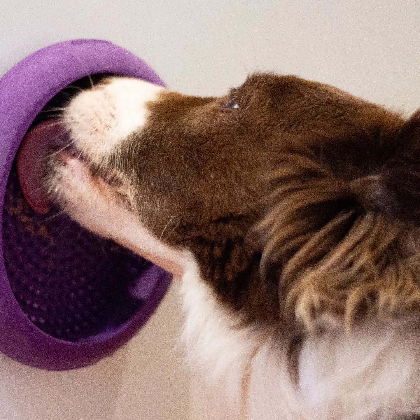 De Lickimat UFO is een likmat met zuignapjes aan de onderkant zodat je hem vast kunt maken aan een gladde ondergrond. Daarnaast heeft deze likmat een opstaande rand waardoor het voer makkelijker erin blijft zitten. Je kunt de Lickimat UFO ook gebruiken in de douche!